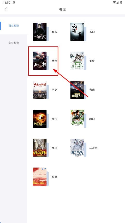 在书库分类页面点击【武侠-分类标签】,即可浏览武侠类书籍。