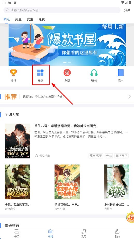 点击【分类-功能按钮】,进入书库分类页面。