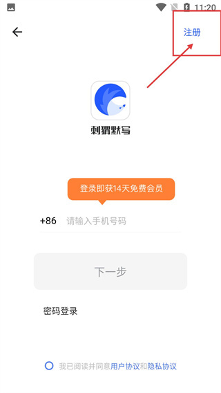 在登录界面,点击【注册】,可进入注册界面。