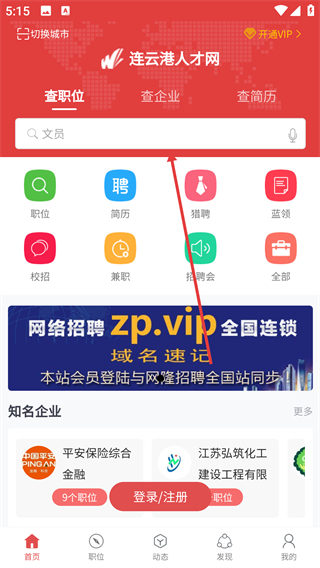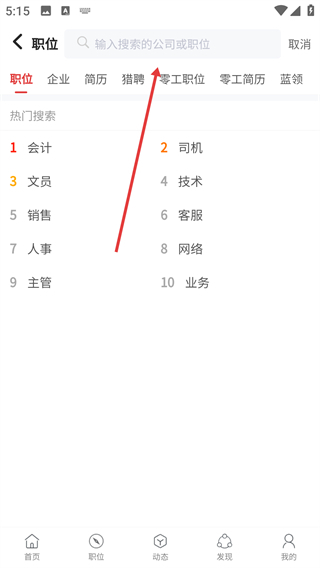 点击搜索框,进入职位搜索界面。