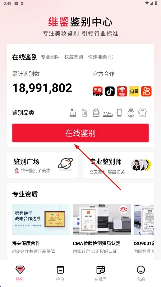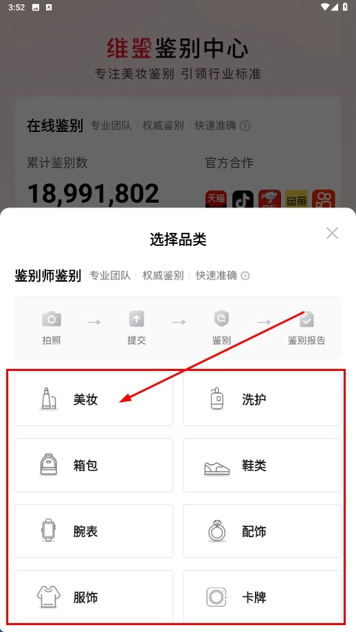 点击【在线鉴别-功能按钮】,进入选择品类页面。
