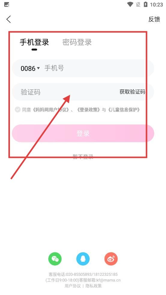 在选定身份后进入登录页面,可选择通过手机进行登录操作,输入对应的手机号码并获取验证码,在勾选相关协议后点击【登录】按钮即可。