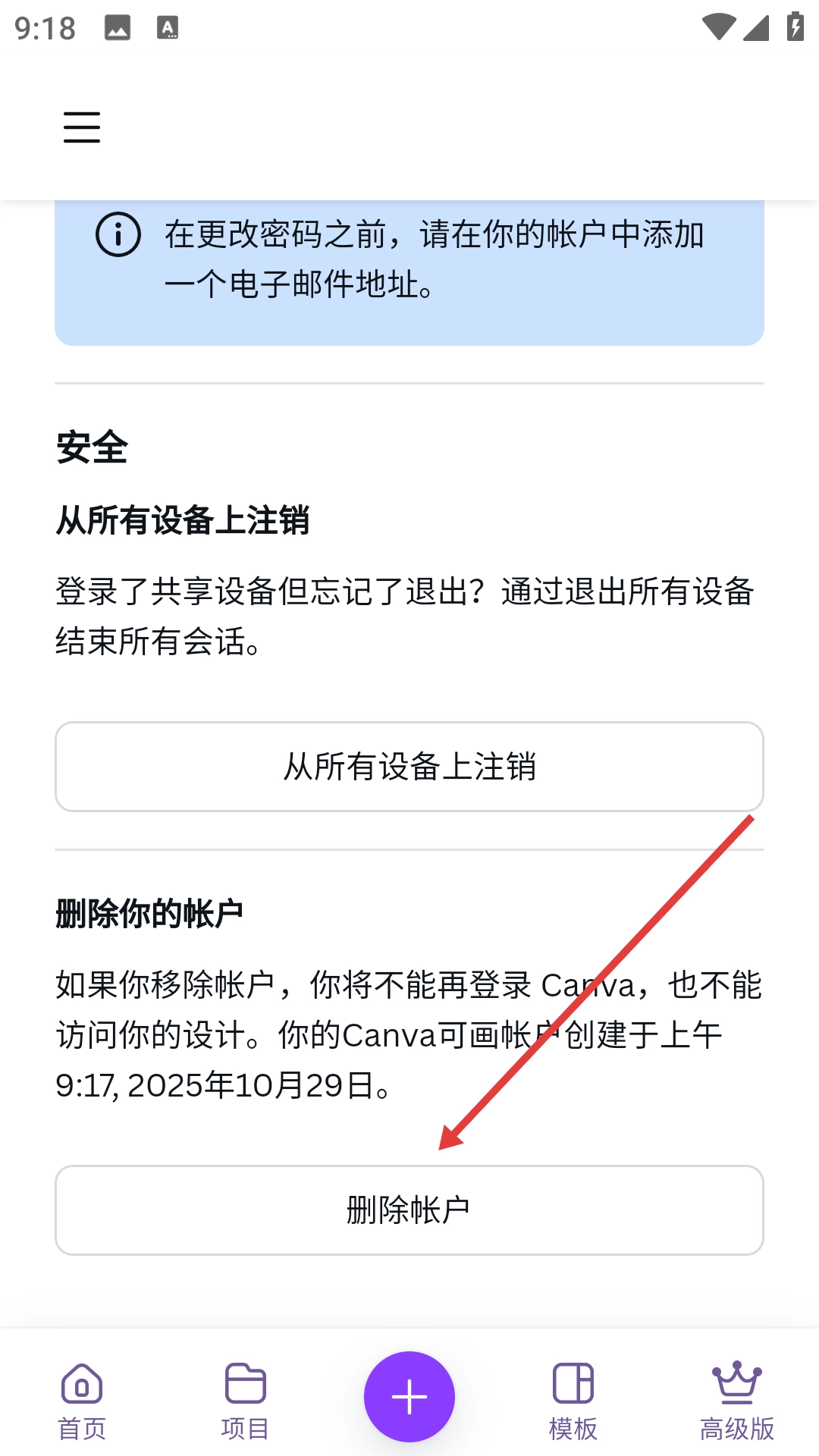 在登录设置页面中,点击【删除帐户】按钮即可执行账户删除操作。