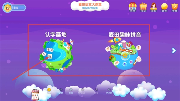 进入麦田语文大课堂后,你可以点击【认字基地】进入对应的学习模块,从而开启语文认字的学习之旅。