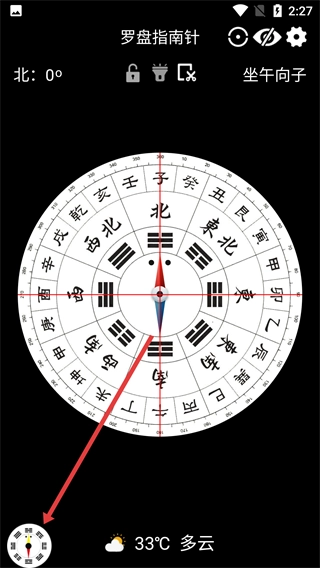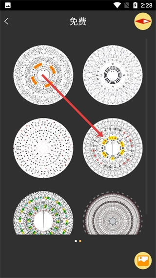 在【罗盘指南针-界面】中,点击左下角的小罗盘图标,就能进入罗盘样式选择页面。