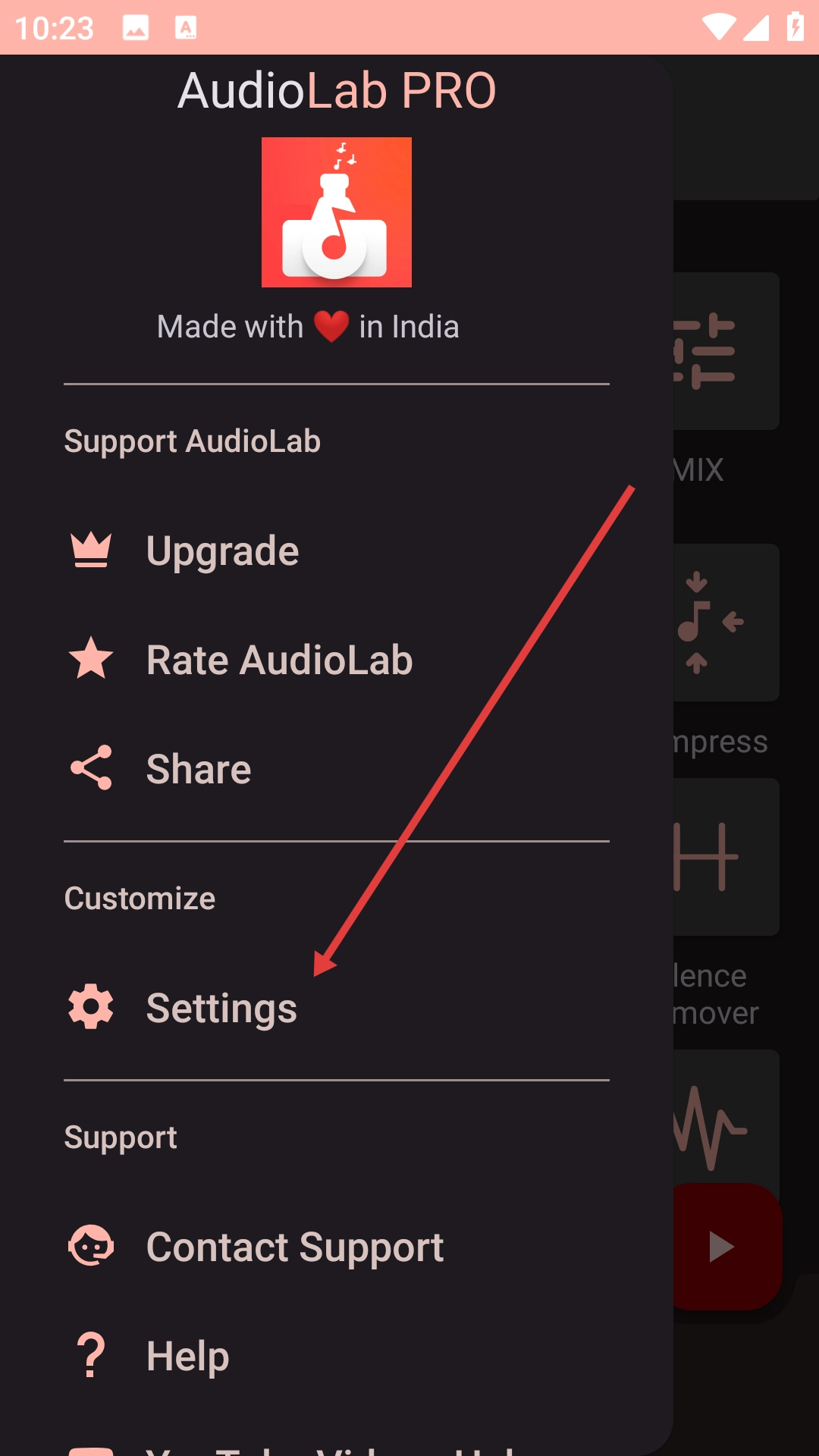 点击底部的菜单按钮后,侧边栏会展开,届时能看到【Upgrade】【Rate-AudioLab】【Settings】等功能选项。