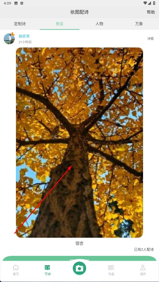 在依图配诗页面,挑选需要配诗的图片,例如【银杏-图片】。