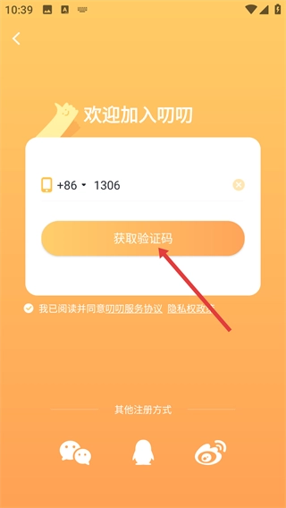 在注册页面填写手机号后,点击【获取验证码】按钮,等待接收短信验证码。