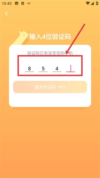 在验证码输入界面,按顺序填写收到的4位验证码,即可完成验证步骤。