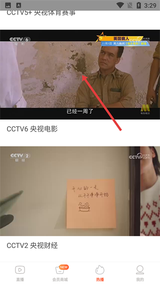 在热播板块中,挑选像【CCTV6央视电影】【CCTV2央视财经】这类频道的内容,然后进入相应的频道页面。