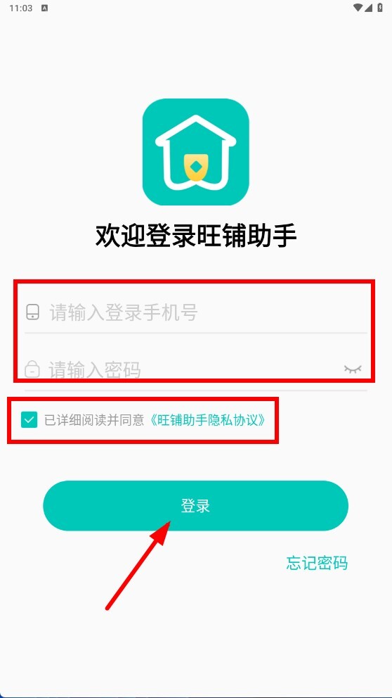 在登录页面依次输入手机号与密码,勾选同意隐私协议后,点击【登录】功能按钮即可完成登录操作。
