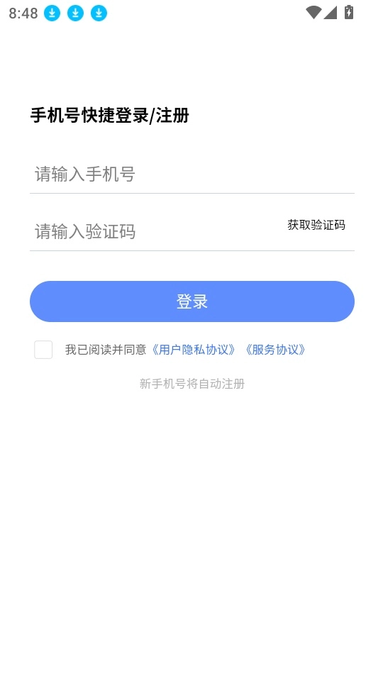 在登录注册界面填写手机号与验证码后,点击“登录”按钮即可一键登录平台。