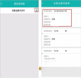 创建报销单后,点击右上角的关联出差申请单按钮;