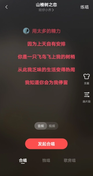 在新打开的页面里,点击【发起合唱】按钮就行啦(合唱形式支持音频或视频,用户只要切换【音频/视频】的开关就能选择对应的形式)