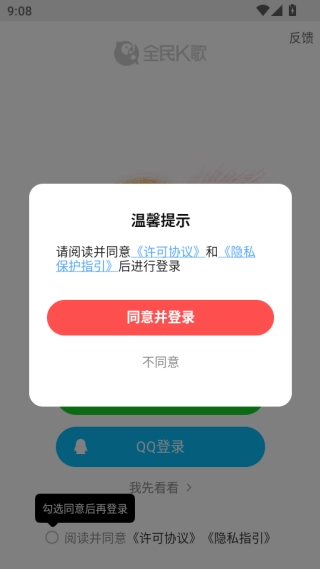 打开软件点击同意用户协议及隐私政策。
