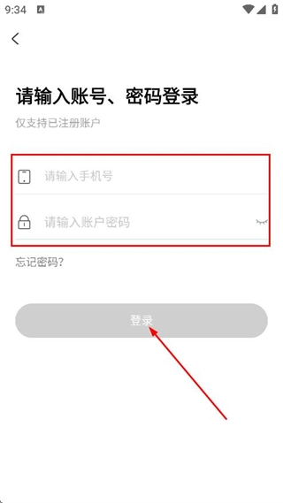 在账号密码登录页面,输入手机号与账户密码,随后点击登录按钮,即可完成登录流程。