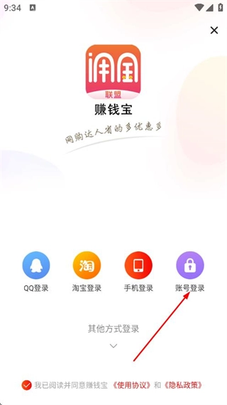 在展开的选项里,选择账号登录,就能进入账号密码登录的流程。
