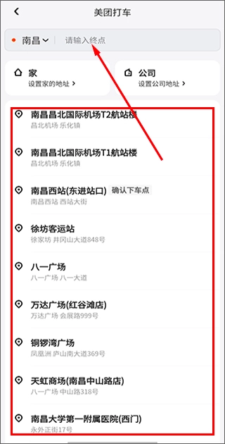 2、随后你就可以输入下车地点进行查询,也可以一键选择系统推荐的热门目的地;