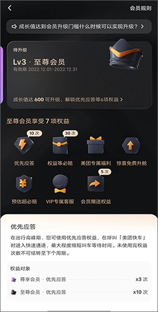 5、不仅如此,每次使用美团打车都能积累成长值。当成长值达到特定数值,会员便可升级,进而享受更多权益。要是您经常有打车需求,美团打车无疑是您的不二之选。