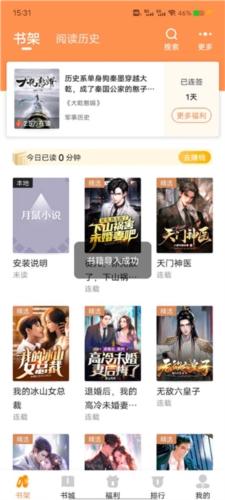 打开月鼠小说最新版,首次进入等待应用加载,