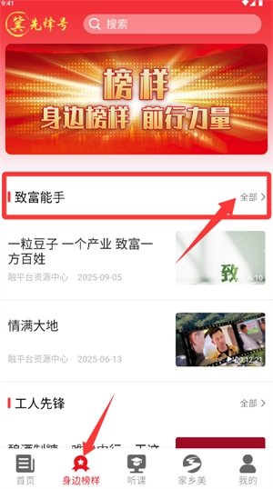 跳转至身边榜样界面,点开致富能手可查阅全部案例。