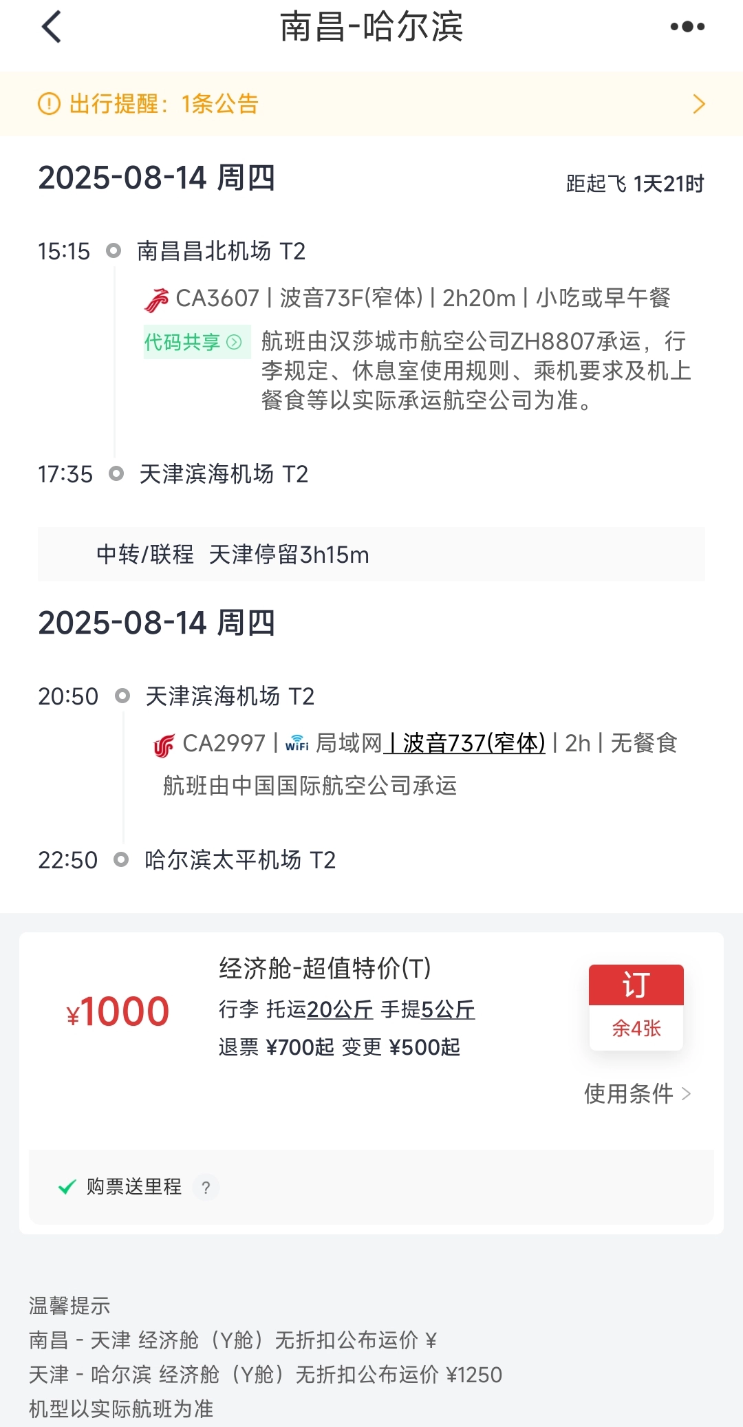 无论您是在何处购买的国航机票,不仅能够查询自身的行程安排,还会收到贴心的行程服务提醒。