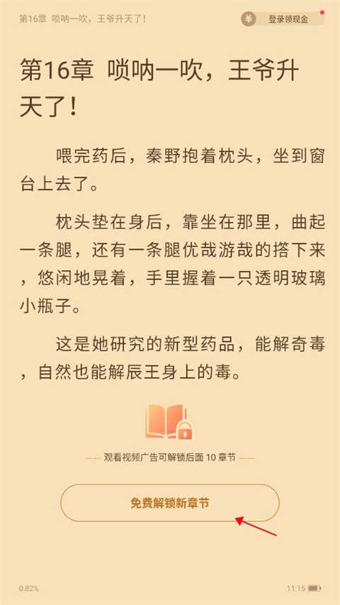 1. 在阅读小说过程中,要是碰到需要解锁的章节,点击“免费解锁”这一选项。