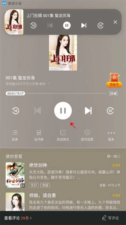 4、阅读时,点击听书图标,就能切换到听书模式。