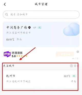 3、接着选中城市,最终呈现出来后,就能看到自己所关注城市的状况了。