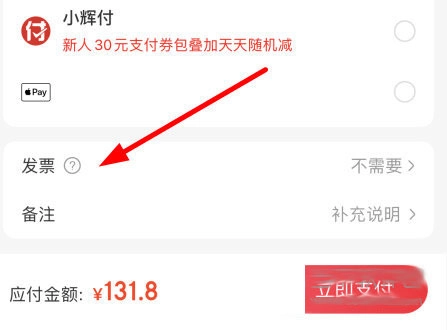 同样是在“订单结算”界面,我们点击最底部的“发票”选项。