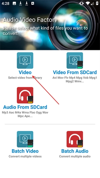 在文件类型选择页面,点击【Video】选项,进入视频选择界面。