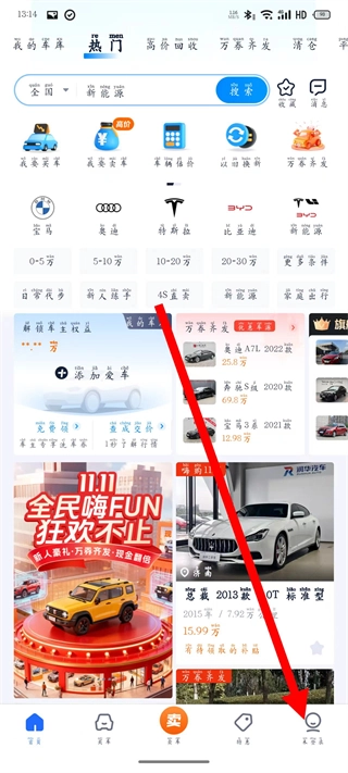 打开二手车之家应用,在首页底部找到“我的”选项并点击,即可进入个人页面。