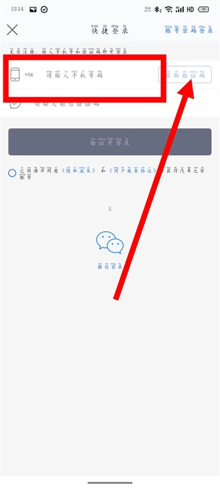 在登录页面,输入手机号后,点击获取验证码。