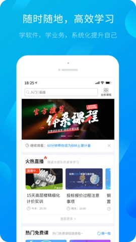 广联达服务新干线平台汇聚了上百名优秀讲师与多家专业培训机构,用户能通过直播和录播两类精品课程开展学习,并且平台支持离线缓存功能,方便用户不受时间地点限制地进行学习。平台的建筑课堂不仅致力于知识的传授,更着眼于为建设行业从业者创造广阔的未来发展空间。在这里,用户可以接触到前沿的建筑技术与理论知识,提升自身的专业能力,从而为个人未来的职业发展筑牢根基。