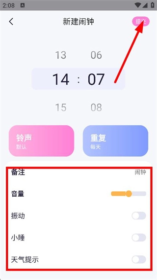 在完成时间、铃声、重复、备注等选项的设置后,点击提交按钮,即可完成闹钟的创建。