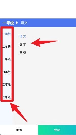 选择对应的年级与学科后,便能筛选出所需的教学内容,系统支持从一年级到六年级的科目分类查找功能。