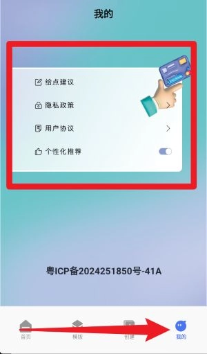 在我的页面上,您可以阅读隐私政策、查阅用户协议、设置个性化推荐,并且支持提交反馈和建议。