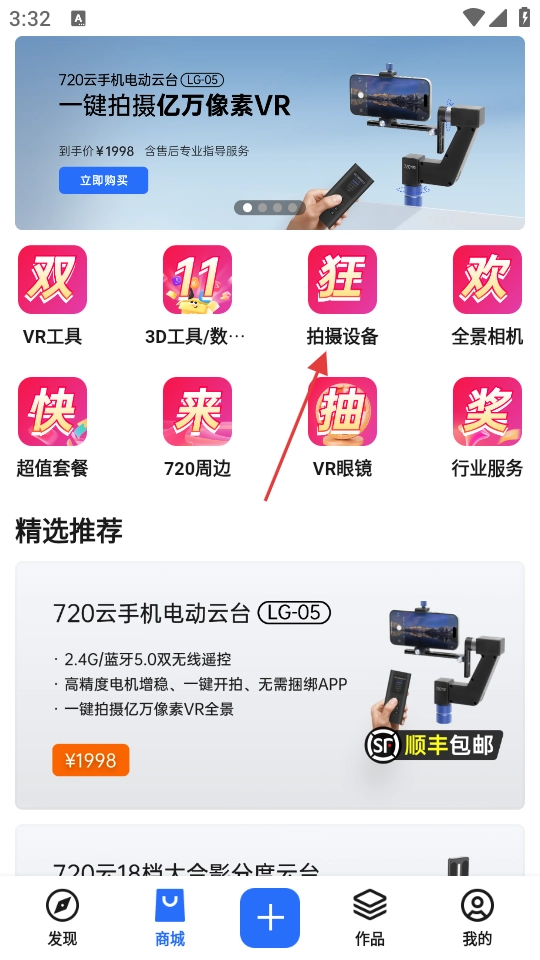 在商城页面点击【拍摄设备】选项,就能进入拍摄设备分类板块,查看相关设备列表。