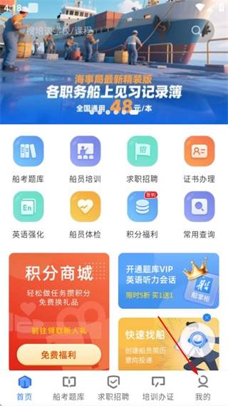在船掌柜首页,点击右下角的“我的”选项,即可进入个人页面。