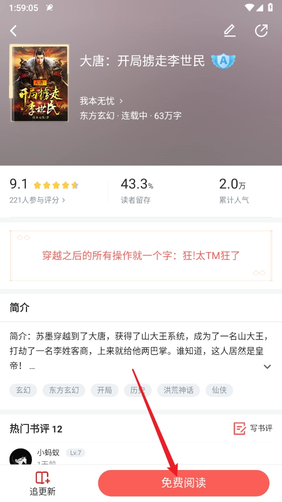 在小说详情页,点击"免费阅读"。