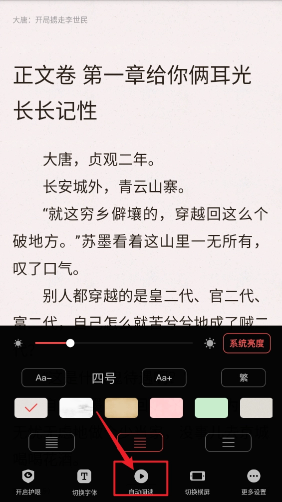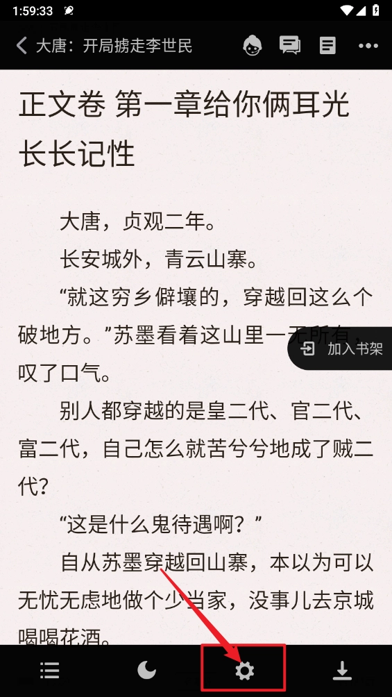 进入后阅读界面点击底部"设置"图标。