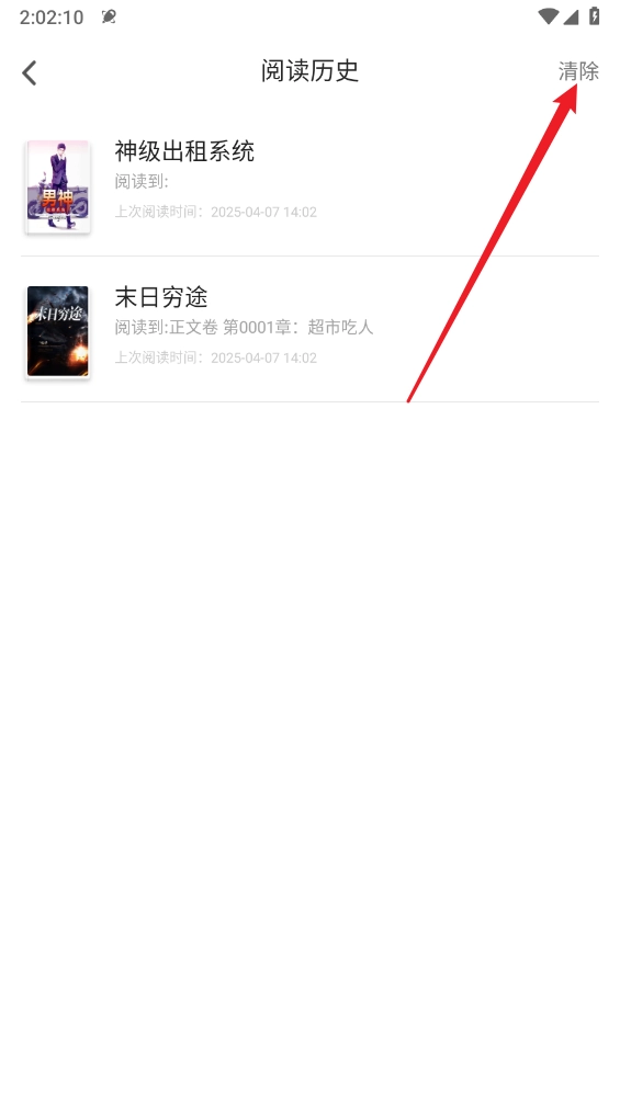 最后在阅读历史页面点击右上角的"清除"即可。