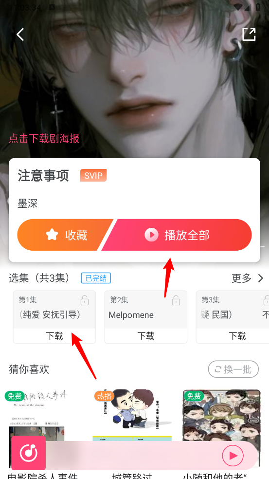 用户在剧集页面挑选出自己喜欢的广播剧后,点击对应按钮就能把它下载到本地,这样就便于离线收听了。