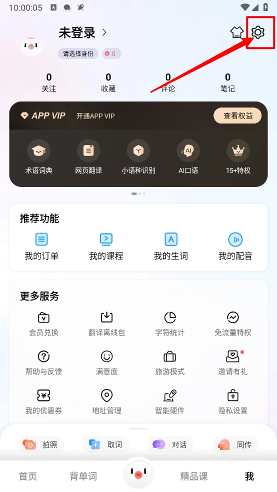 打开百度翻译,进入我的页面。
