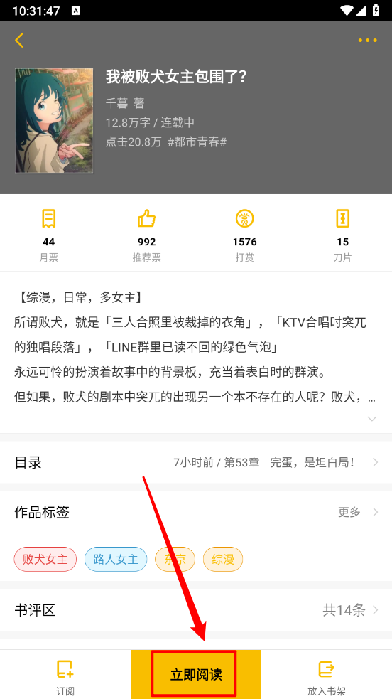 然后在小说详情页点击"立即阅读"。