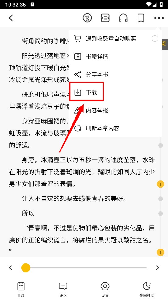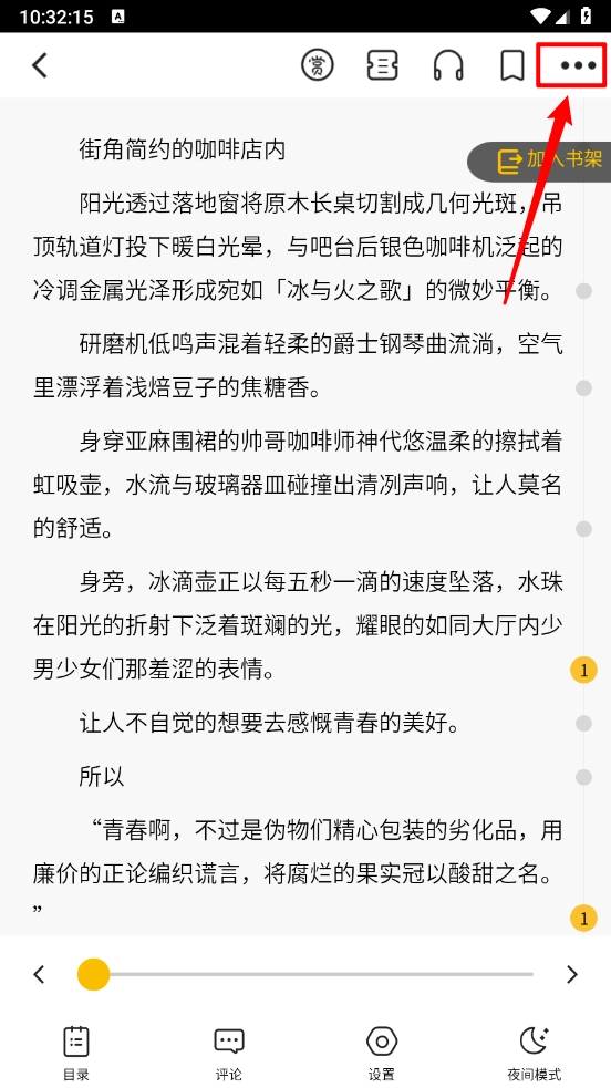 进入阅读界面点击右上角三个点,如图所示。