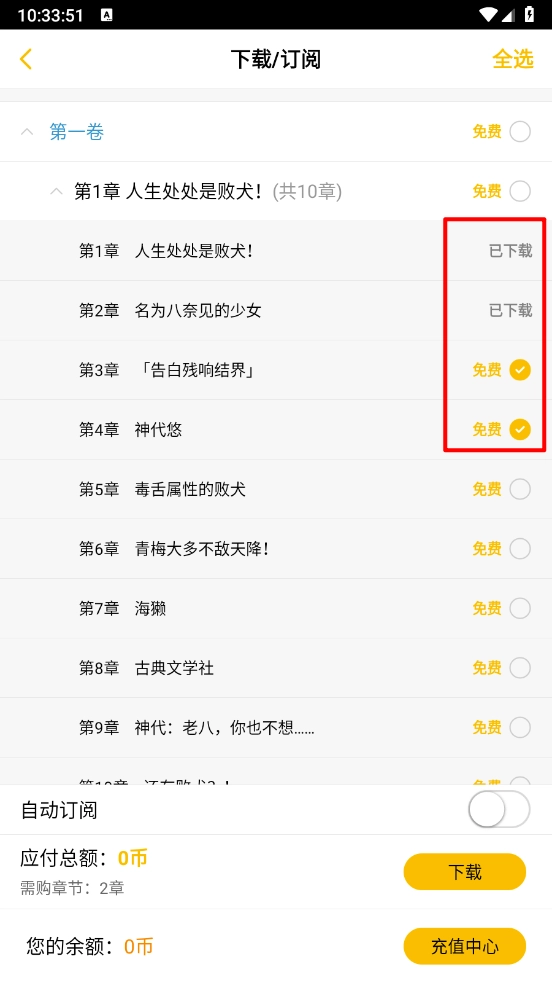 最后选择所需的章节进行即可。