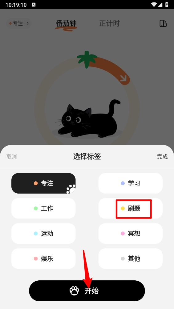 可以设置多种不同时长的专注时段,还有萌萌的猫咪吃饭动画可以搭配,每当完成一个专注周期,系统就会自动给猫咪投喂猫粮。