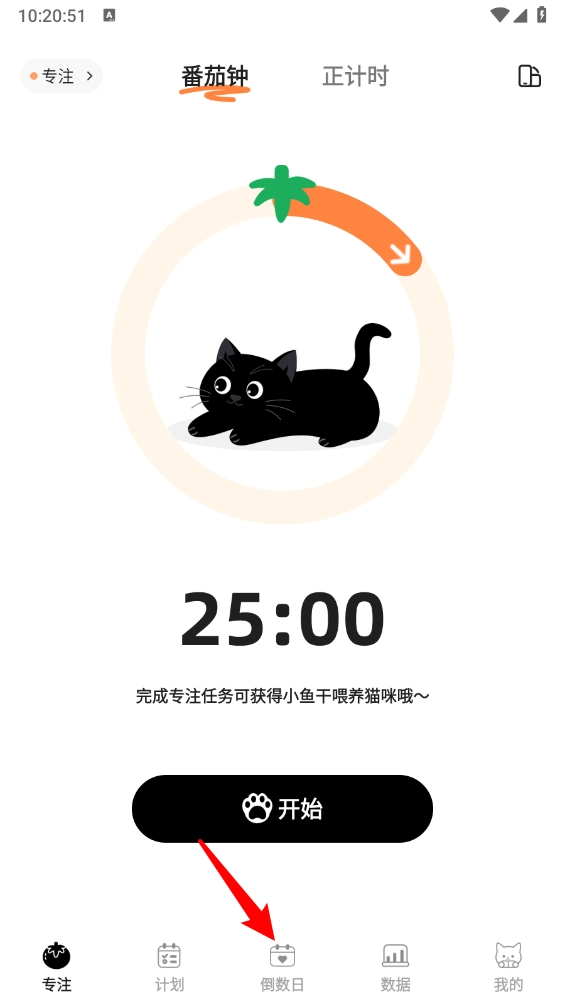 打开喵喵自律器,在主页点击"倒数日"。