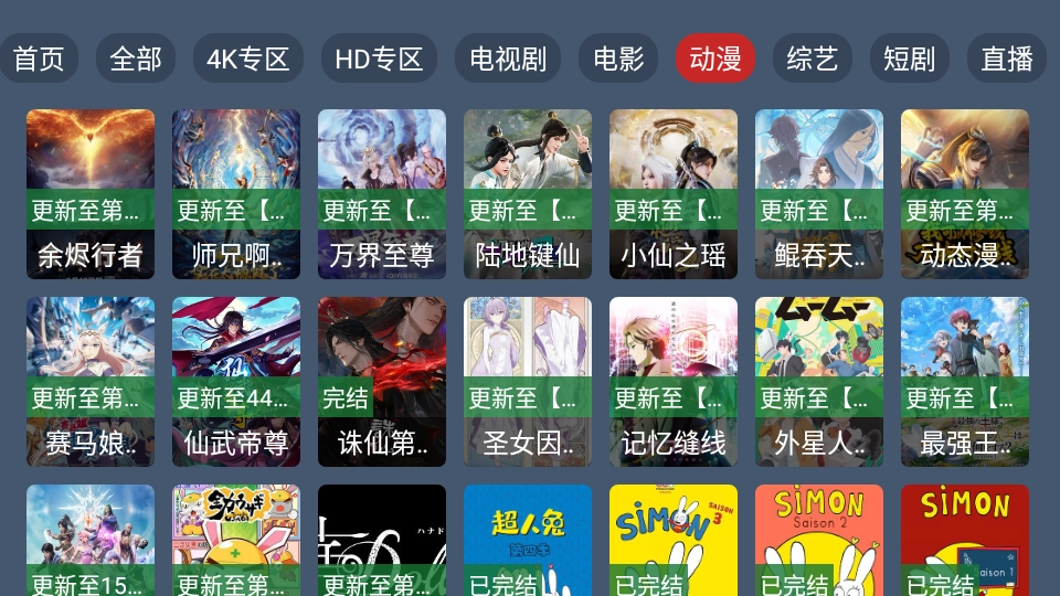 顺利进入首页后,我们就能浏览到各类不同分类的影视剧集资源了。